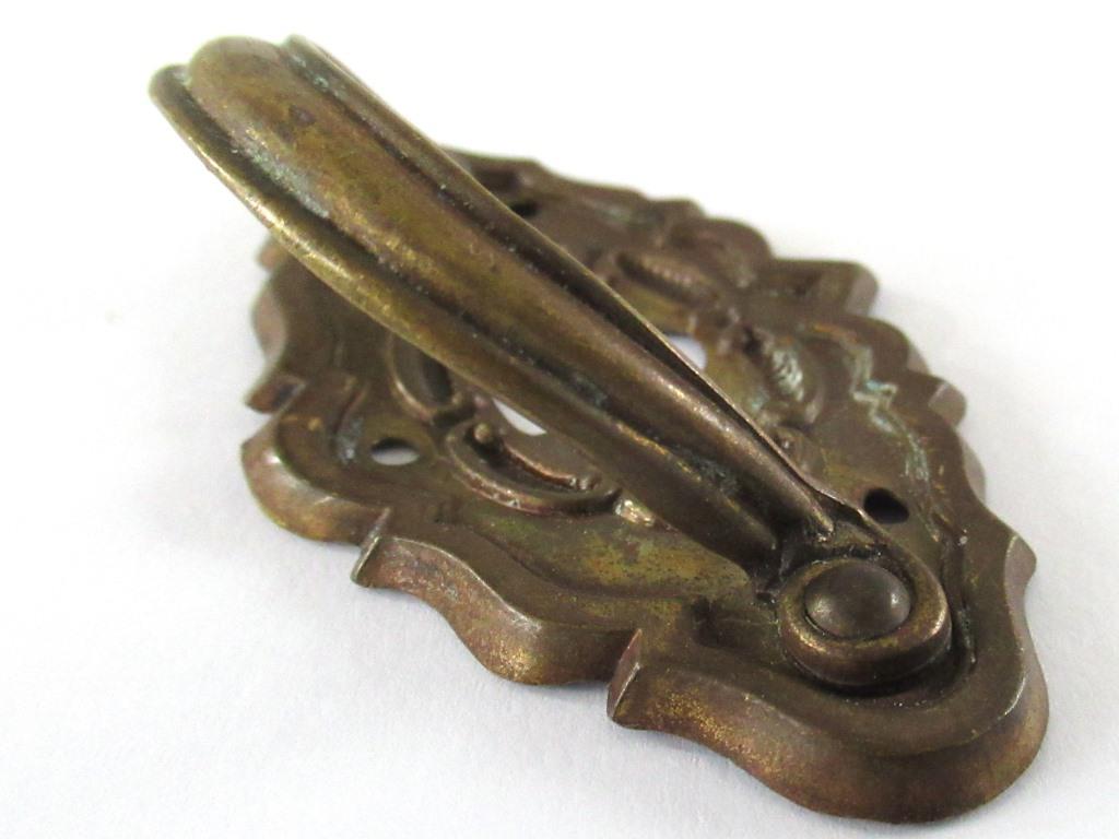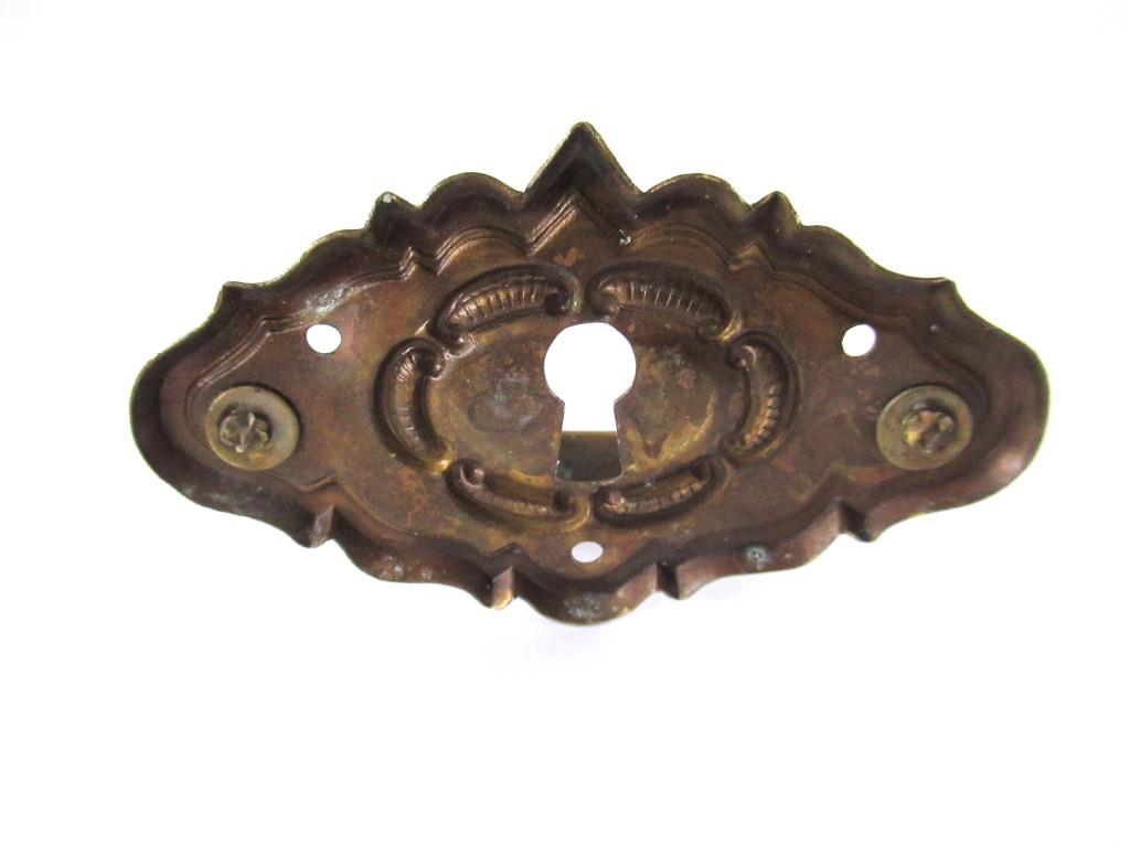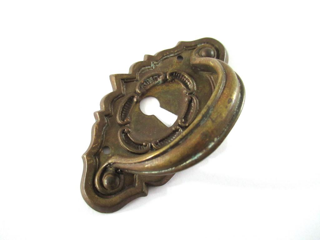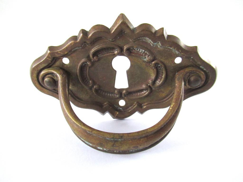 A beautiful antique solid brass drawer handle / keyhole cover.