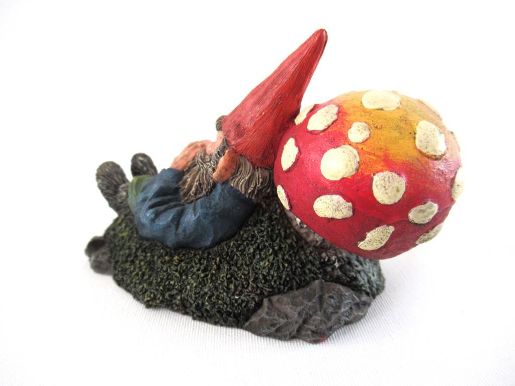 Gnome sleeping against a Mushroom. Rien Poortvliet Sleeping Gnome Figurine, David the Gnome. David el Gnomo. AAAAAAA International Co. Ltd.